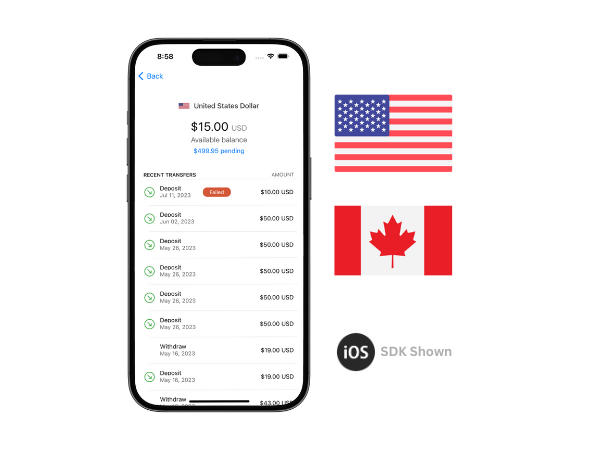 Access virtual FBO accounts for safely holding fiat currency, for both USD and CAD. These cash accounts are perfect for a seamless flow of funds within many payment use cases.